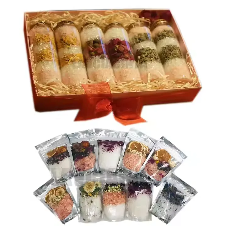 Eco-friendly and Aesthetically Pleasing Our customized bath salt with dried flowers is made with natural ingredients, free from chemicals, ensuring environmental friendliness and safety. Moreover, the aesthetic appeal of dried flowers adds a touch of nature to your bathroom, making your bath time a dual sensory delight for both sight and smell. This product reflects our commitment to customer health and the pursuit of a beautiful lifestyle.